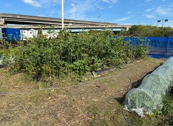 晴天のもと、サツマイモやオクラ、なすの収穫作業をしました。