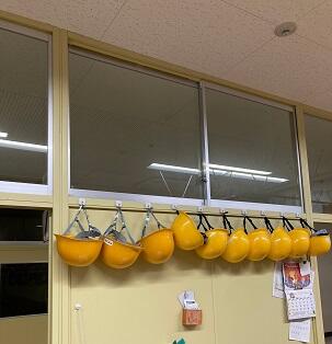 児童生徒と担任分のヘルメットを各クラスの実態に合わせてマグネットフックで吊るしています。12月の地震津波避難訓練にはヘルメットをかぶって参加する予定です。