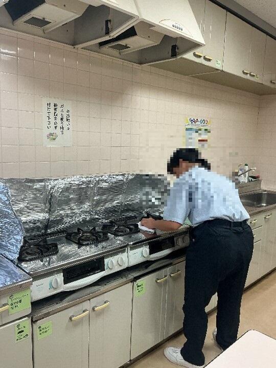 学校の授業で行っていた、トイレ清掃や階段清掃、絨毯や畳の掃除機がけを行いました。