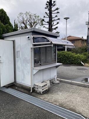 校門の受付ボックスに録画機能付き防犯カメラを2台設置しました。今後も学校安全に取り組んでいきます。