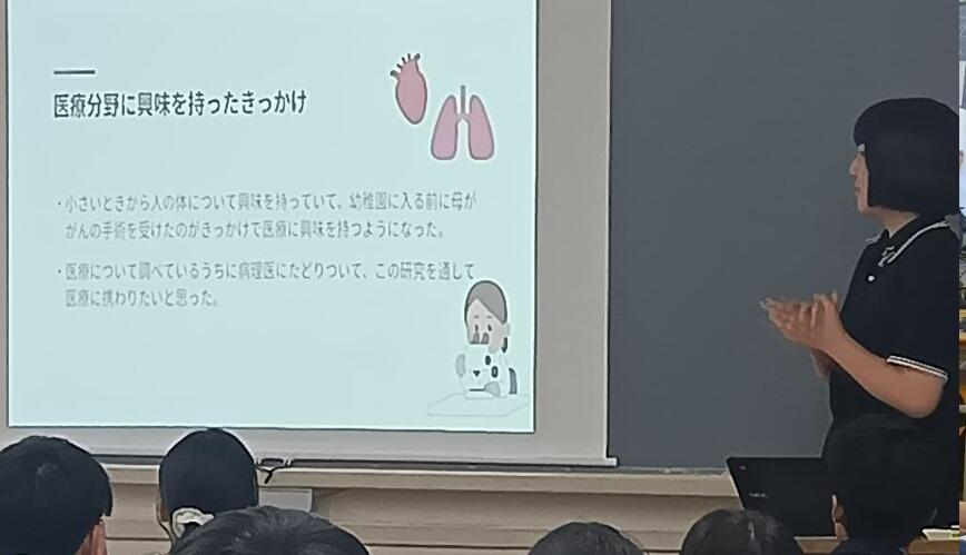 学びの航海図の2回目も素敵な発表がたくさんありました。「青いバラ」を作成した企業の話やアルフォンス・ミュシャへの愛、医学を志すようになったエピソードなど、聞いている人を引き込む見事なプレゼンの数々でした。四條畷高校では発表機会が多いと思いますが、そんな畷高生活で成長してきた78期生のプレゼン力は見事だなと改めて感じました。