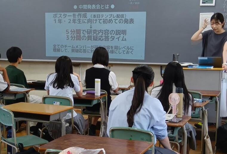 今回の探究チャレンジⅡでは2学期にある中間発表会に向けて何が必要なのかの説明を受けました。79期生にとっては初めての発表会ですので緊張するでしょうが、しっかり準備しておくことが何より大切です。自分達では当たり前だと思っていることでも、初めて研究を聞く人たち、特に1年生にとっては全く新しい知識かもしれません。話を聞いてくれる対象をしっかり意識して準備を進めましょう。また、アンケートに協力する姿もたくさん見られました。