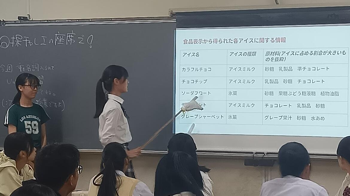 本日の探究の時間では、夏の探究活動の報告を各チームから行いました。「最強の泥だんご」を作ったチームや、キラキラチョークの作成にチャレンジしたチームなど、9クラス72種類の様々な活動報告がなされました。各クラス8種類の様々なテーマがありますので、聞く生徒も興味津々の様子で発表に聞き入っていました。