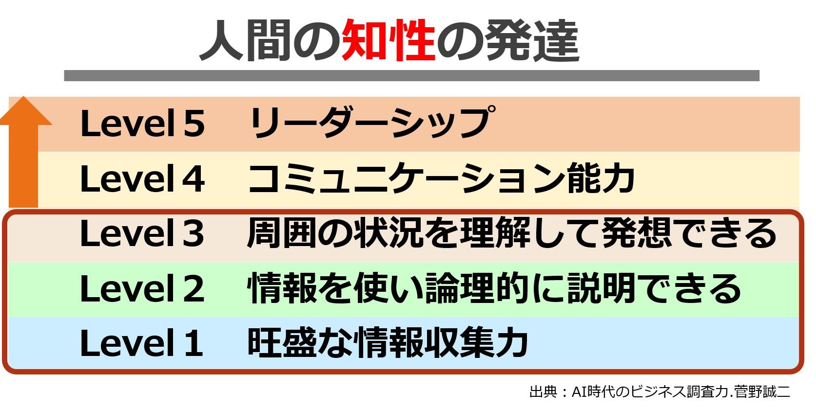 また、今後賢い使い方が必要になってくるAIについても話をしました。「人間の知性の発達段階でLevel3まではAIができるようになってしまった。しかしLevel4・5に位置付けられるコミュニケーション力やリーダーシップは、今の段階ではAIが到達することは難しいとされている。そして、それに必要な能力を鍛えられるのが探究活動だ」ということを伝えました。