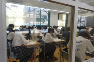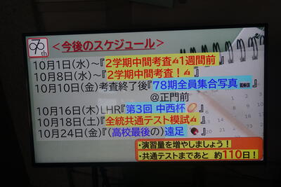 写真は例によって廊下から遠慮がちに撮った1枚と3年生の掲示板からです。