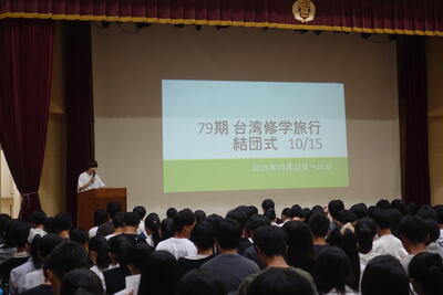 今日は中間考査終了後、鹿深野ホールにて来週出発する79期修学旅行の結団式を行いました。