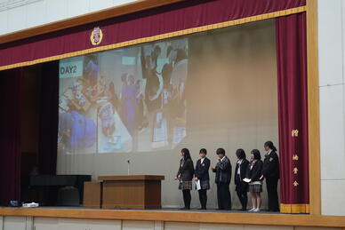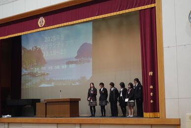 その後、ベトナム医療ボランティア研修に参加した生徒による報告がありました。昨日の朝に帰国したばかりであるにもかかわらず実に立派な発表をしていました。