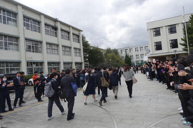 午後からの合格者オリエンテーションでは、クラブ員の先輩たちが校門から会場までの間に花道を作り、合格者を迎えました。合格者の皆さんは喜びと少し緊張の感じられる面持ちで登校してきました。