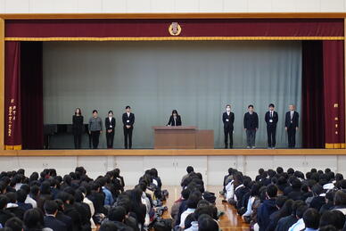校長のことば(令和8年度1学期始業式.pdf)のあと、新着任の先生方の紹介、転出された先生についての報告、表彰と続きます。