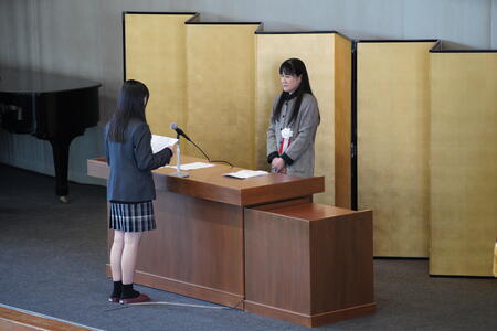 ご来賓の皆さま、大勢の保護者の皆さまが拍手される中、新入生が入場してきます。新入生告示のあと、新入生の代表が本校へ思いを込めた素晴らしい宣誓をしてくれました。