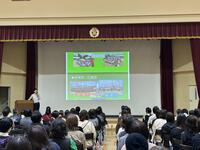 修学旅行期間中はあいにくのお天気ではありましたが、スライドで子どもたちの活動の様子を拝見し、充実した楽しい旅行であったことが伝わってきました。特に最終夜の全体レクリエーションの動画では、生徒や先生方の普段とは違う表情に、会場が笑顔に包まれました。