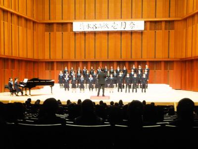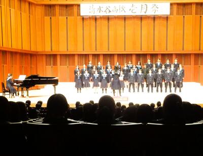清水谷高校の伝統ある学校行事「壱月祭」を東大阪市文化創造館大ホールで開催しました。1,2年生の全16クラスがステージで課題曲と自由曲を混声四部合唱で発表。厳正なる審査の結果、1年生はH組、2年生はE組が見事優勝!フィナーレでは、オーケストラ・アンサンブル部の伴奏と合唱部のリードにより、課題曲を全員で会場全体を震わせるハーモニーで熱唱し、思い出に残る行事となりました。