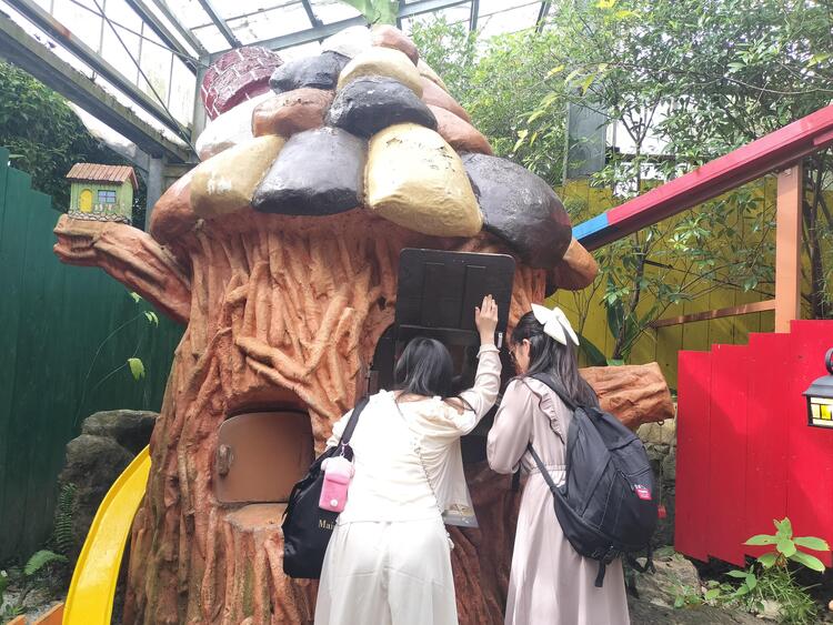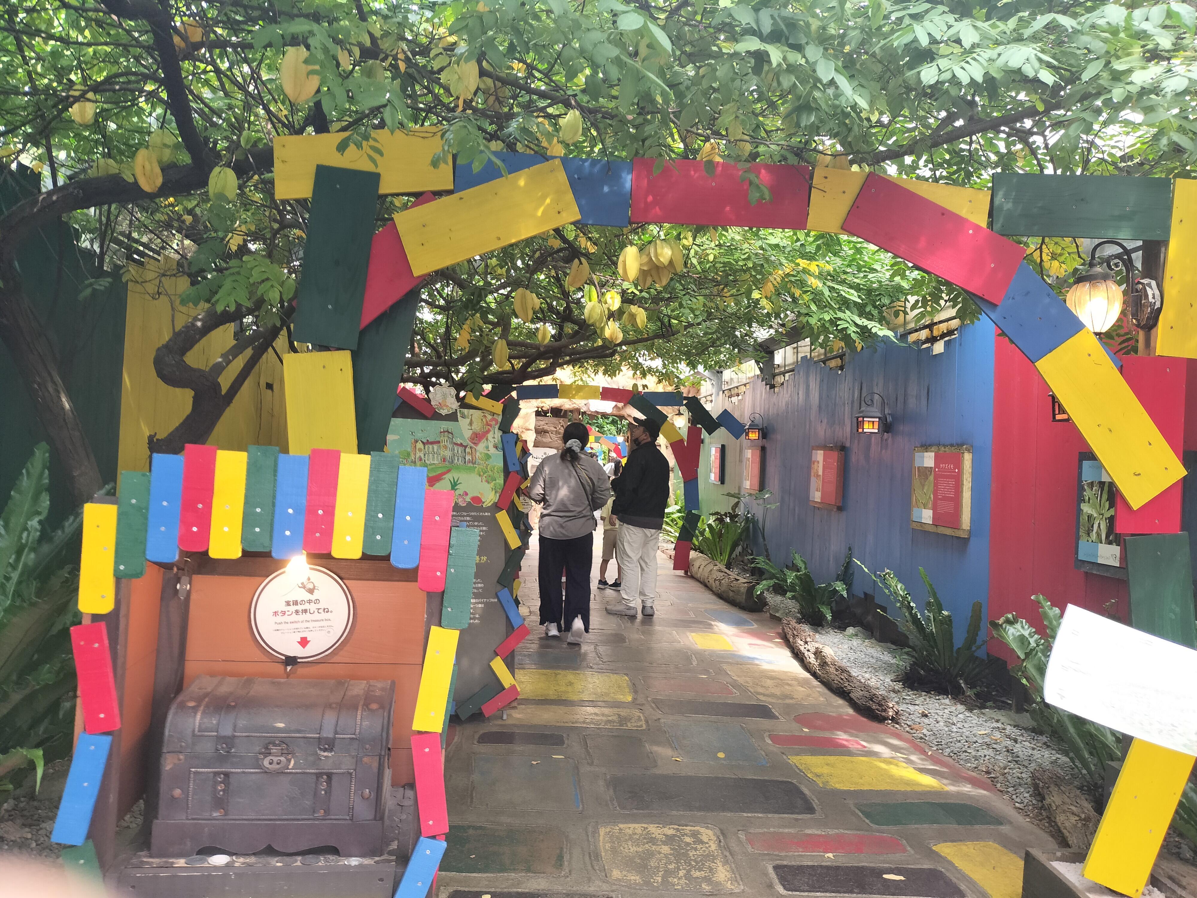 トロピカル王国OKINAWAフルーツらんどにて、みんなその世界観にのめり込んで、謎解きを頑張っていました。謎を全て解くことで王様を助け、勇者と認められた人もいるようです。