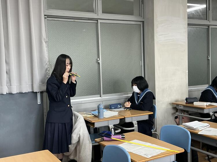 各班の代表者が演奏して、クイズ形式で題名を当てました。