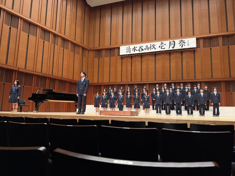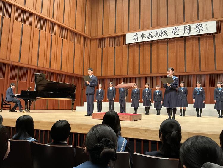 壱月祭は、文化委員長の挨拶から始まり、合唱部先導で声出しの練習が行われました。