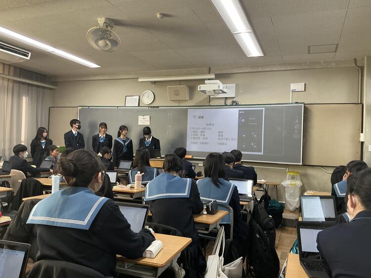 6限目は分野内での中間探究発表会を実施しました。各自が設定したテーマについて調査・考察を行い、その成果を発表しました。