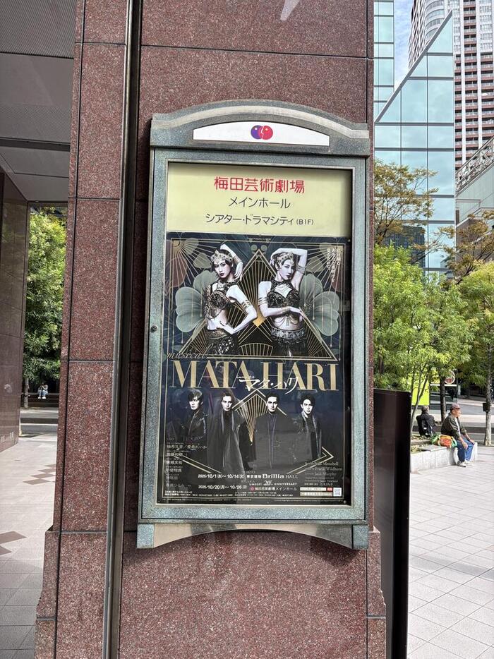 真実は嘘と裏腹、惑わされるな... ということで、10/21(火)は芸術鑑賞会でした。 1~3限まで授業を受け、ダッシュで昼食を取り、梅田芸術劇場へ。 僕自身も初めて訪れます。ワクワクします。 ミュージカル『マタ・ハリ』を鑑賞します。 マタ・ハリは、第一次世界大戦中にスパイとして活躍した踊り子ですね。 3階席からでしたが、しっかり堪能できました。 戦時中の国家をまたぐスパイの物語なので、難しい...