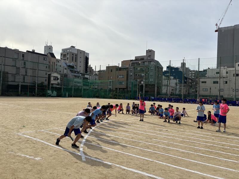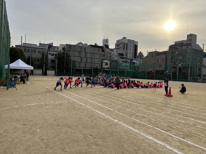 こちらもクラス全員参加、5人1組で8回リレーしてグラウンドを1周します。