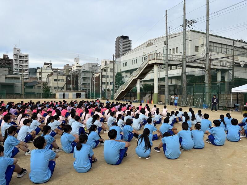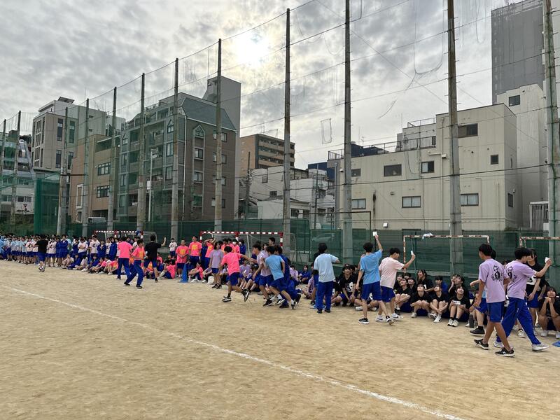 こちらもクラス全員参加。担任がコーン代わりで立ちます。