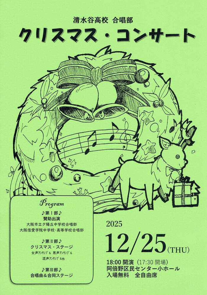 12/25(木)阿倍野区民センターに於いてクリスマスコンサートを開催します。
