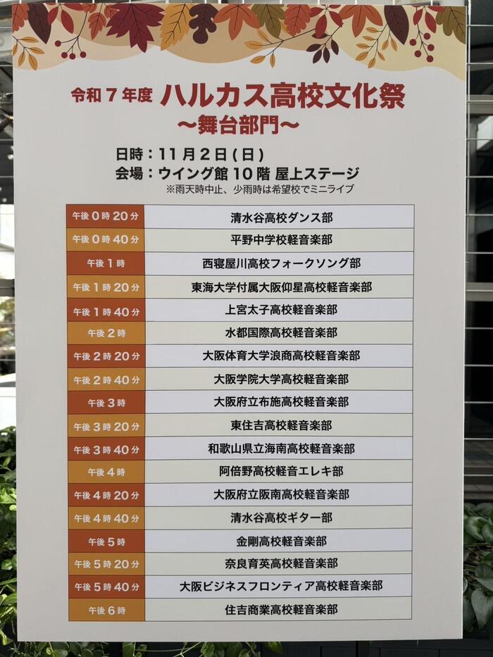 今年も出させていただきました。ハルカス高校文化祭! 2年生はHR合宿から帰ってきてすぐの参加で、1年生は2年生がいない間、学校で一生懸命練習しての初めての参加となりました。 みんな元気に楽しく参加させていただきました。 ありがとうございました。 次は、年末12/26の芸文連の大会に向けて部員全員、協力して頑張ります。 応援よろしくお願いします!