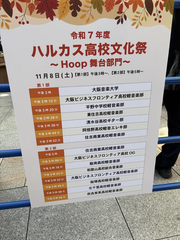 これは、先月行われたハルカス高校文化祭の出演バンドの中から優秀バンドがあべのHoopで演奏できるというもので、