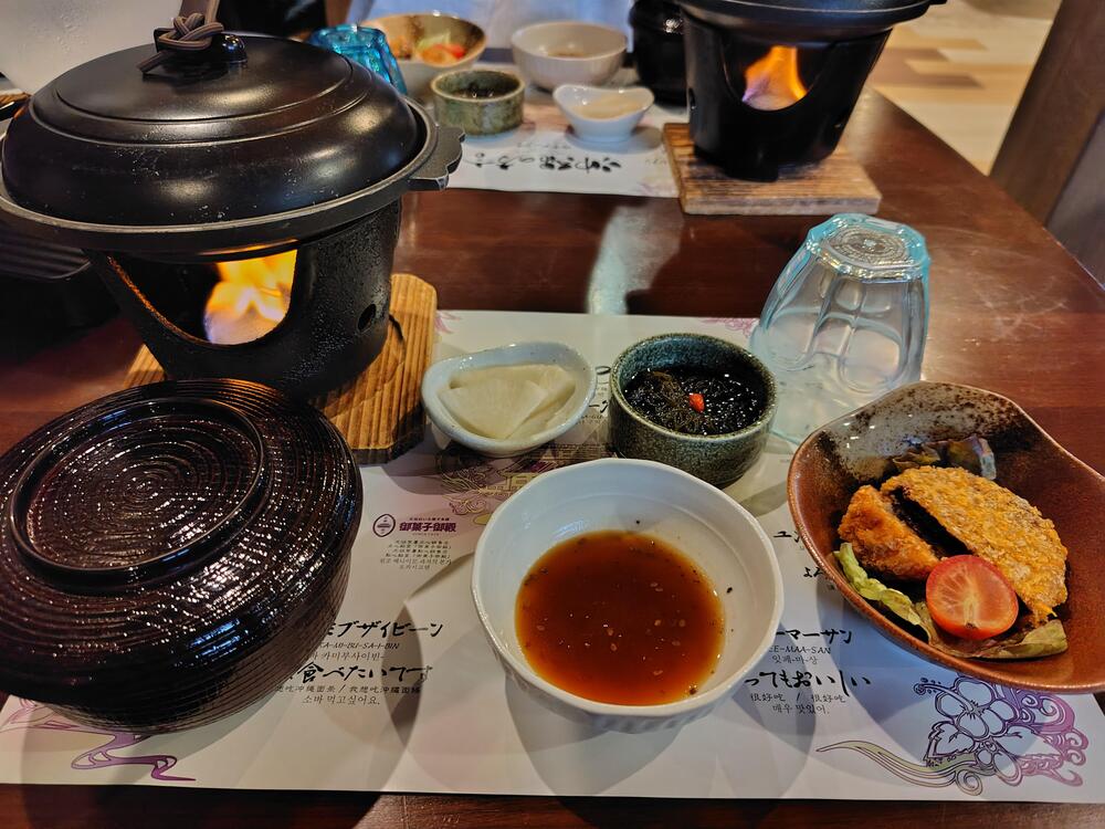 メインのお肉は、焼きながら食べるスタイルでした。食べごろになって、蓋を取る瞬間は、ワクワク感に浸っていました!見た目よし、音もよしと食欲が急上昇しました!