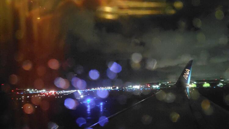 帰りは窓側〜!離陸の瞬間は雨が降ってましたが、滑走路の灯火がキラキラしてて、綺麗でした〜!