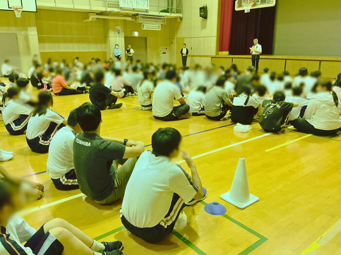 大教大池田の事件当事者の方から貴重なお話を伺ったあと、旭警察の指導のもと「さすまた」の使用方法や護身術についての訓練を教員全員で行いました。まずは「危険な状況を作らない」ために、今後も学校危機管理体制を見直し、具体的な改善を1つひとつ重ねていきます。