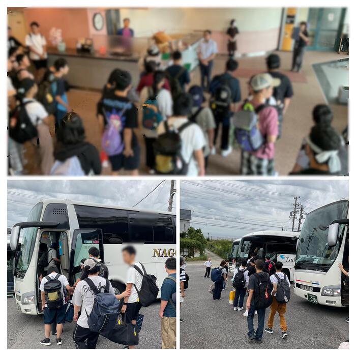 いよいよ宿泊学習の日がやってきました‼️元気に登校してくれて一安心です☺️ 初めての宿泊学習で、ワクワクしながらもどこか緊張している生徒たち。 友だちと一緒に、たくさん学んで楽しむぞー‼️ エイエイオー✊
