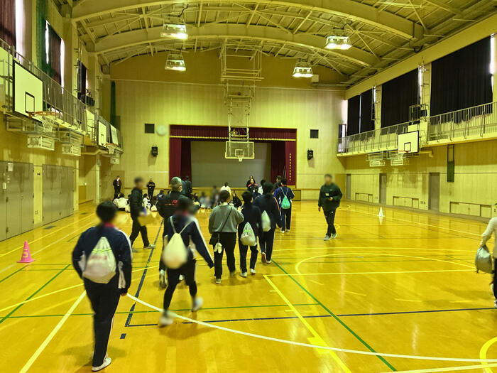 非常用袋を背負い、水害を想定した避難訓練をしました🎒