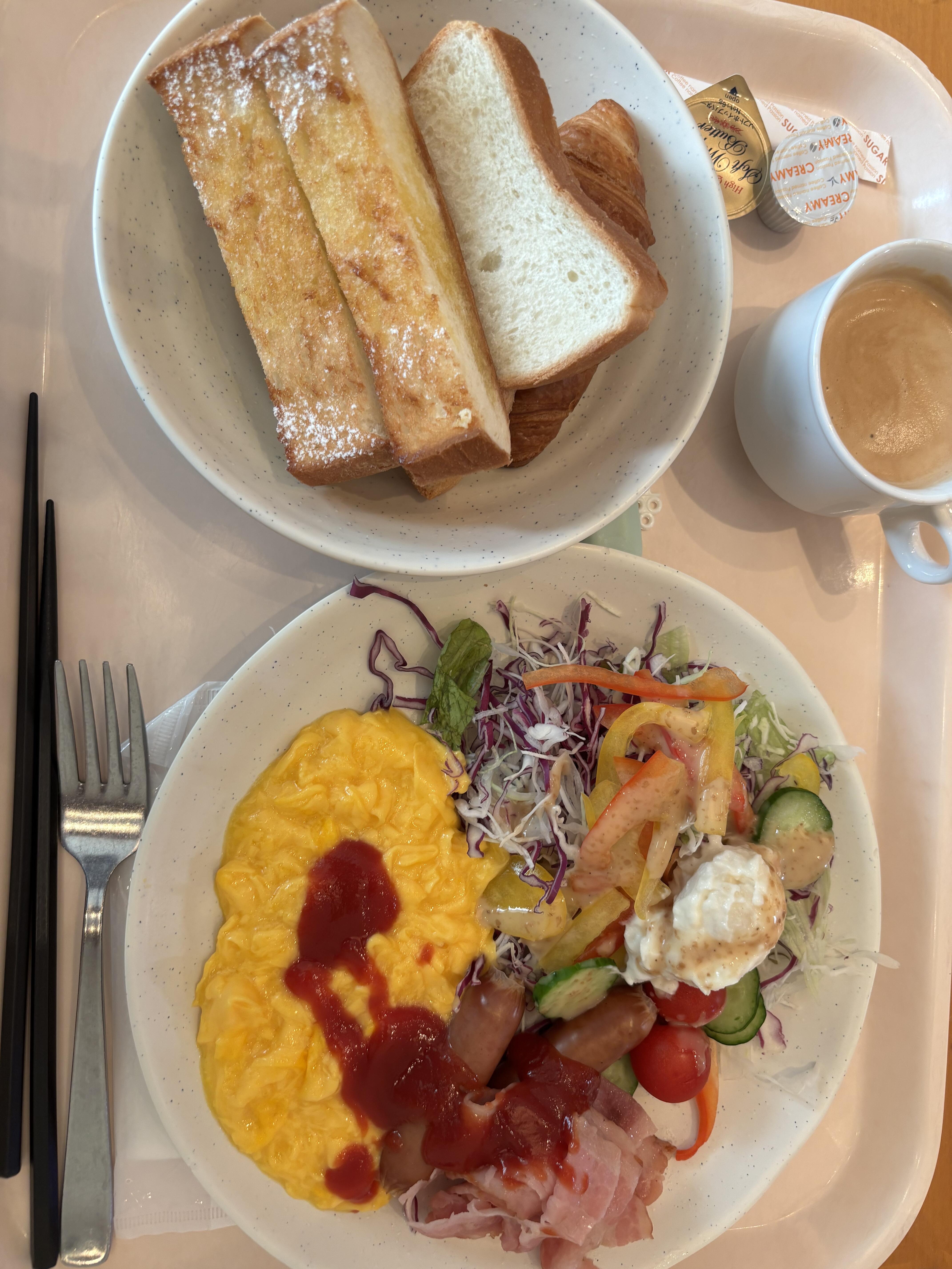 2日めの朝を迎えました!みんな元気に起床し、朝食バイキングを食べました!