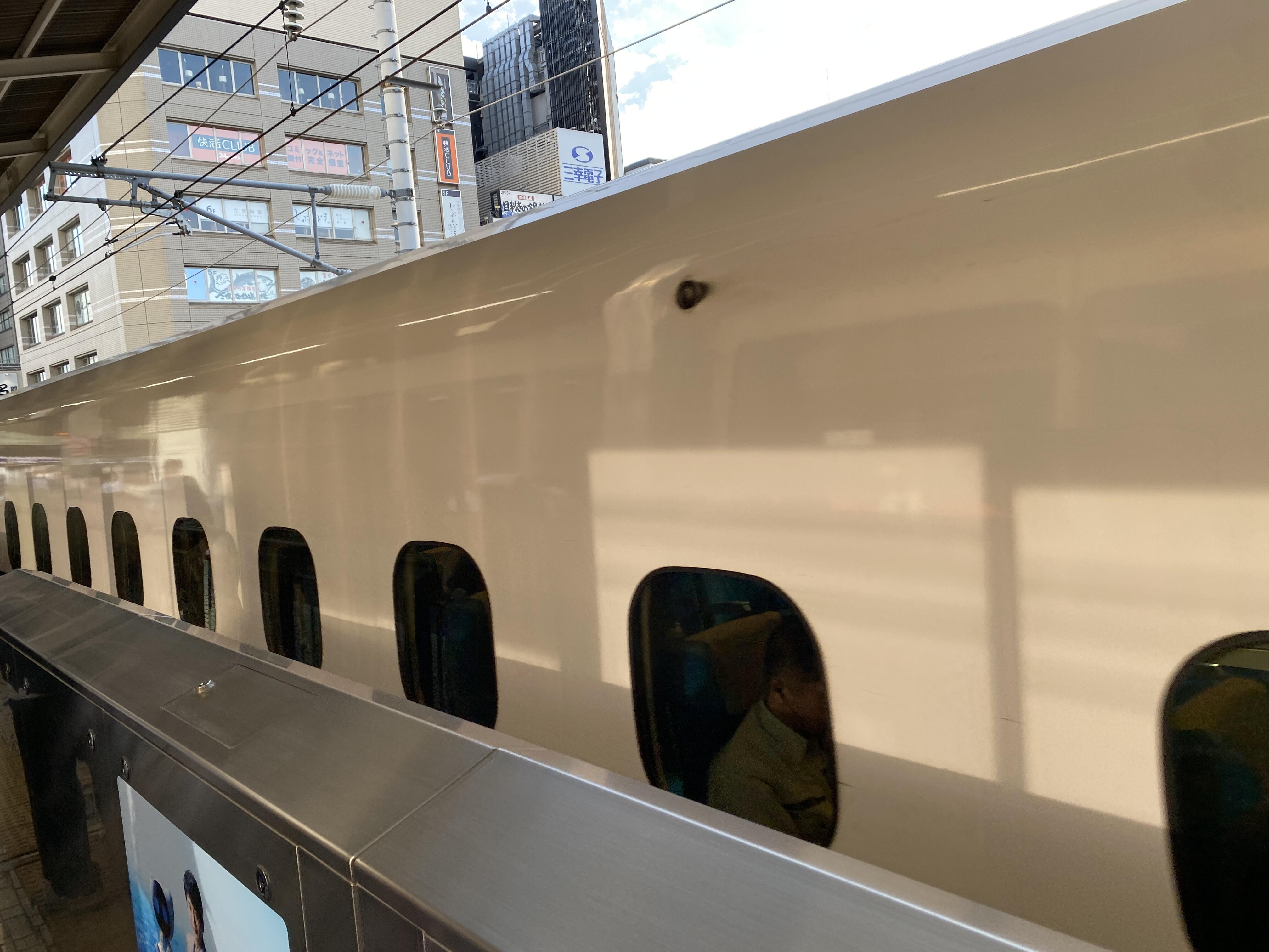 名古屋駅に着いて時間通りに新幹線に乗りました。すぐに寝ようとしていたり、景色を楽しんだらしています。