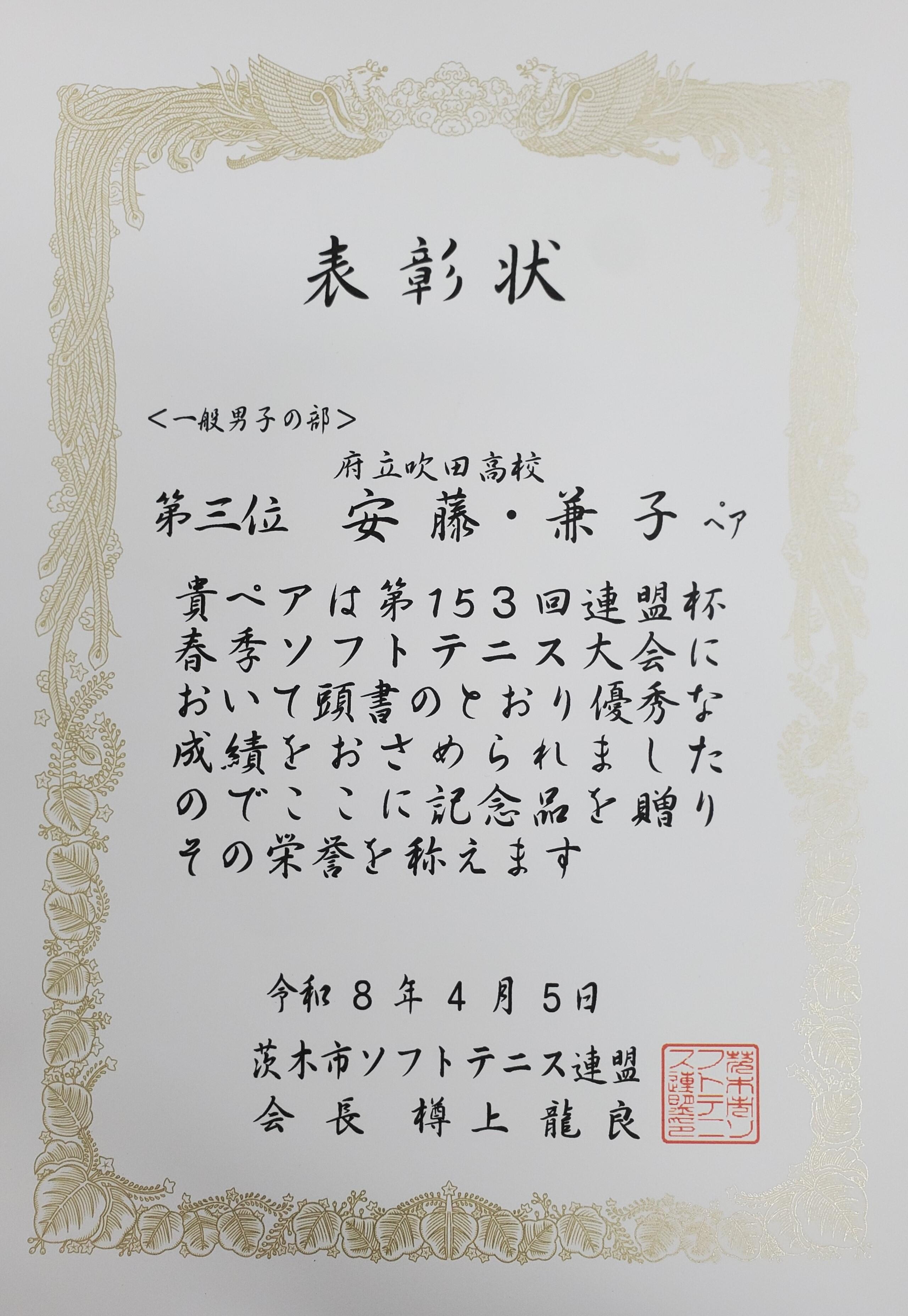 令和8年度、茨木市連盟杯春季ソフトテニス大会に吹田高校から2名が参加してきました。