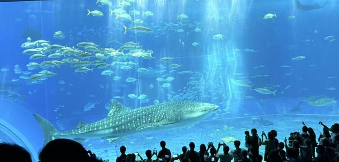 🐾75期生修学旅行 ★実施日 2025年10月22日(水)~25日(土)【3泊4日】 ■本日の行程 10月25日(土) 美ら海水族館・国際通り自由散策・飛行機✈で大阪へ 美ら海水族館は沖縄本島の北部にあります。 ここで飼育されているのは沖縄の生物のみで780種13000点もの生物が飼育されているそうです。 ジンベエザメやマンタなど、迫力ある生き物をたくさん見られました!