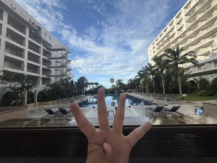 🐾75期生修学旅行 ★実施日 2025年10月22日(水)~25日(土)【3泊4日】 ■本日の行程 10月25日(土) 美ら海水族館・国際通り自由散策・飛行機✈で大阪へ おはようございます最終日の朝を迎えましたお天気は今日も良さそうです! 朝食の様子 修学旅行が楽しくてたまらない中村先生❤ 最終日スタートです