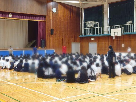 先日、修学旅行の学年集会が開かれ、注意事項や持ち物などの再確認をしました。今年は3泊4日の日程で沖縄にむかいます。民泊体験やマリンスポーツ等の体験プログラム、美ら海水族館や国際通り散策など予定満載です。