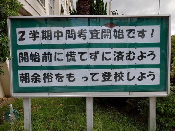 気候も過ごしやすくなり、家庭学習の時間もしっかり取れているかと思います。その努力の成果と自身の実力を正々堂々と発揮してもらいたいと思います。年間を通して定期考査はすべて大切ですが、今回の考査も卒業や進級に大きく関わってきます。体調管理もして乗り切ってください。