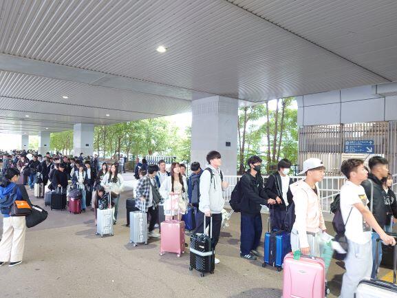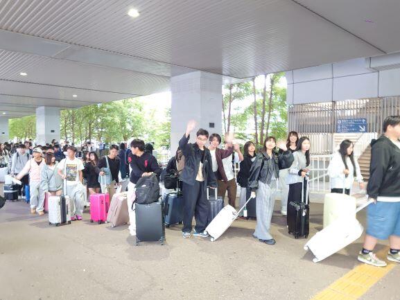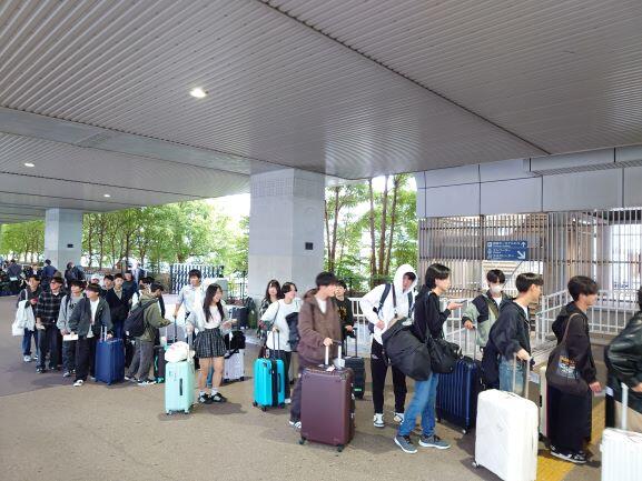 集合場所の伊丹空港では早朝から元気な笑顔をたくさん見ることができました。生徒のみなさんのわくわくした表情がとても印象的です。