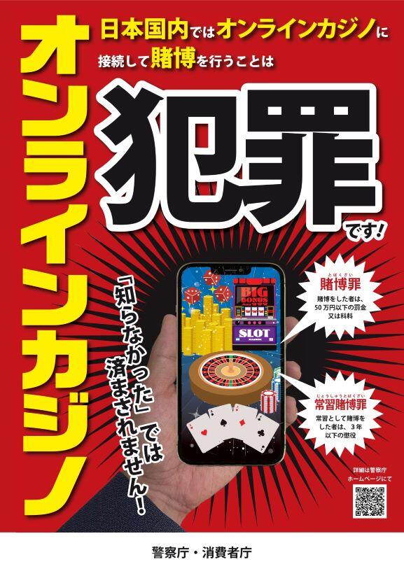 日本ではオンラインカジノに接続して賭博を行うことは違法であり、賭博事犯について取り締まりや広報啓発を推進されているとのことです。