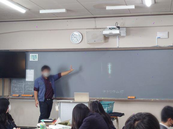 3年生の地学基礎では、太陽の光について学んでいました。太陽の光の波長を理解し、実際に分光器という器具を使ってスペクトルという波長の違いを確認しました。さらに、フラウンホーファー線という太陽光に見られる黒い線も確認することができました。