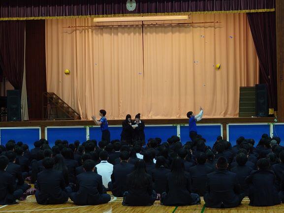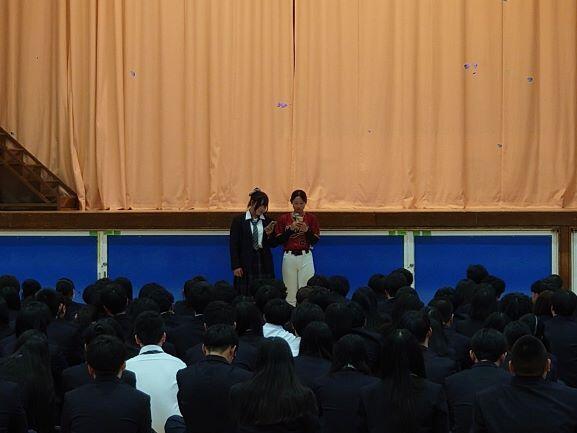 体育館で行われたクラブ紹介では、すべての部活動が活動内容などの説明や実演を披露し、部員募集のアピールをしました。