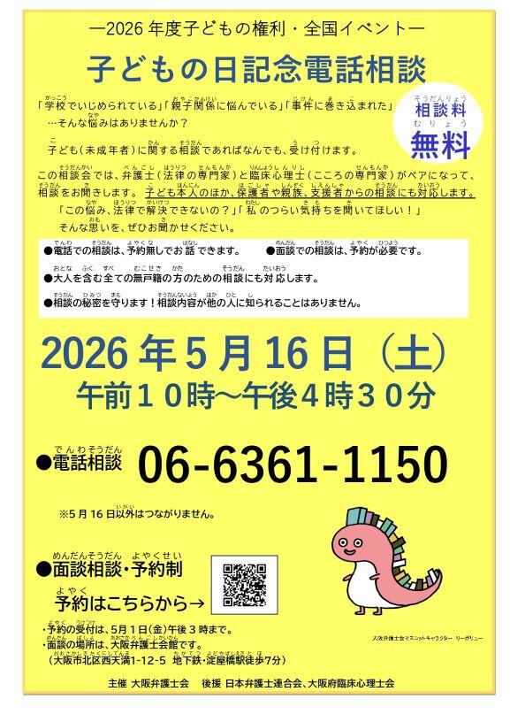 大阪弁護士会から電話相談の案内です。