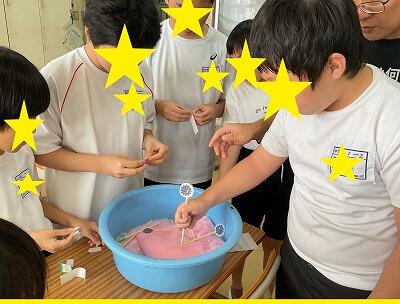 9月のテーマは「思いやり」でした。 ふわふわ言葉やちくちく言葉をみんなで考えたり、イラストを貼ったり。 みんなはケガをしたら保健室にいって絆創膏をもらって手当してもらうけど 「こころ」はどうだろう? みんなでジップロックに水を入れたものをこころに見立てて、割りばしでチクチク攻撃し、その後は、絆創膏で手当てをしました。みんな慎重にちくちくで攻撃していました。 結果は・・・? 心は絆創膏を貼っても「...