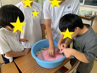 みんなでジップロックに水を入れたものをこころに見立てて、割りばしでチクチク攻撃し、その後は、絆創膏で手当てをしました。みんな慎重にちくちくで攻撃していました。