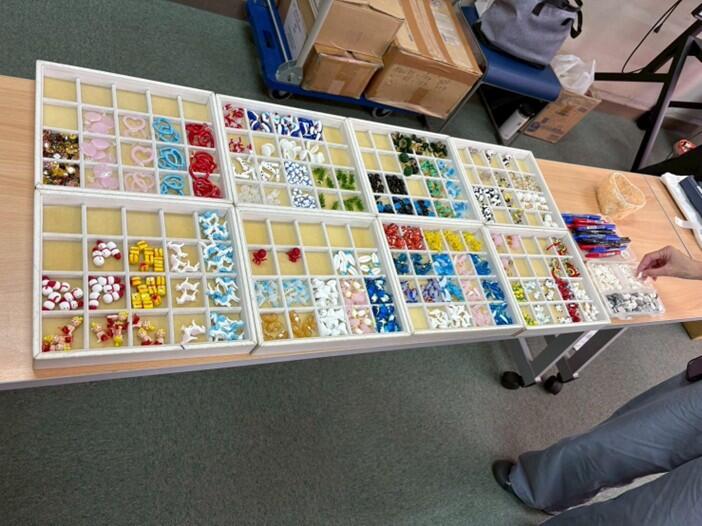 キャンドルに入れるガラス細工を50種類以上の中から選ぶのですが、すべて可愛いくて選ぶのに苦労しました。