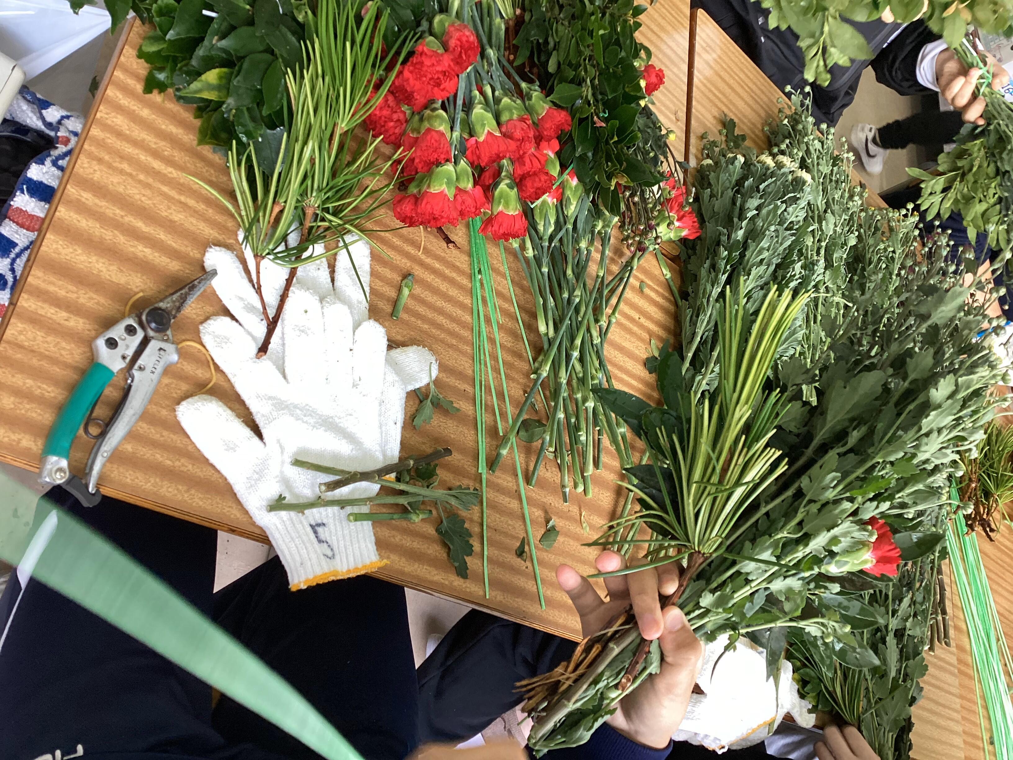11月11日(火)~11月21日(金)まで、2週間にわたり校内実習と現場実習が行われています。校内実習では、外部から新しい作業の発注がありました。生花を指定された順番に束ねてひもで結ぶ作業です。はじめは難しかったですが、慣れてくるととても早く作ることができるようになりました。まだ実習は続きますが、最後まで集中して取り組んで欲しいです。