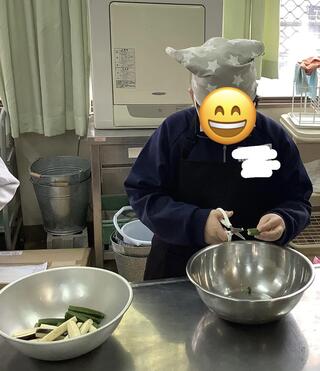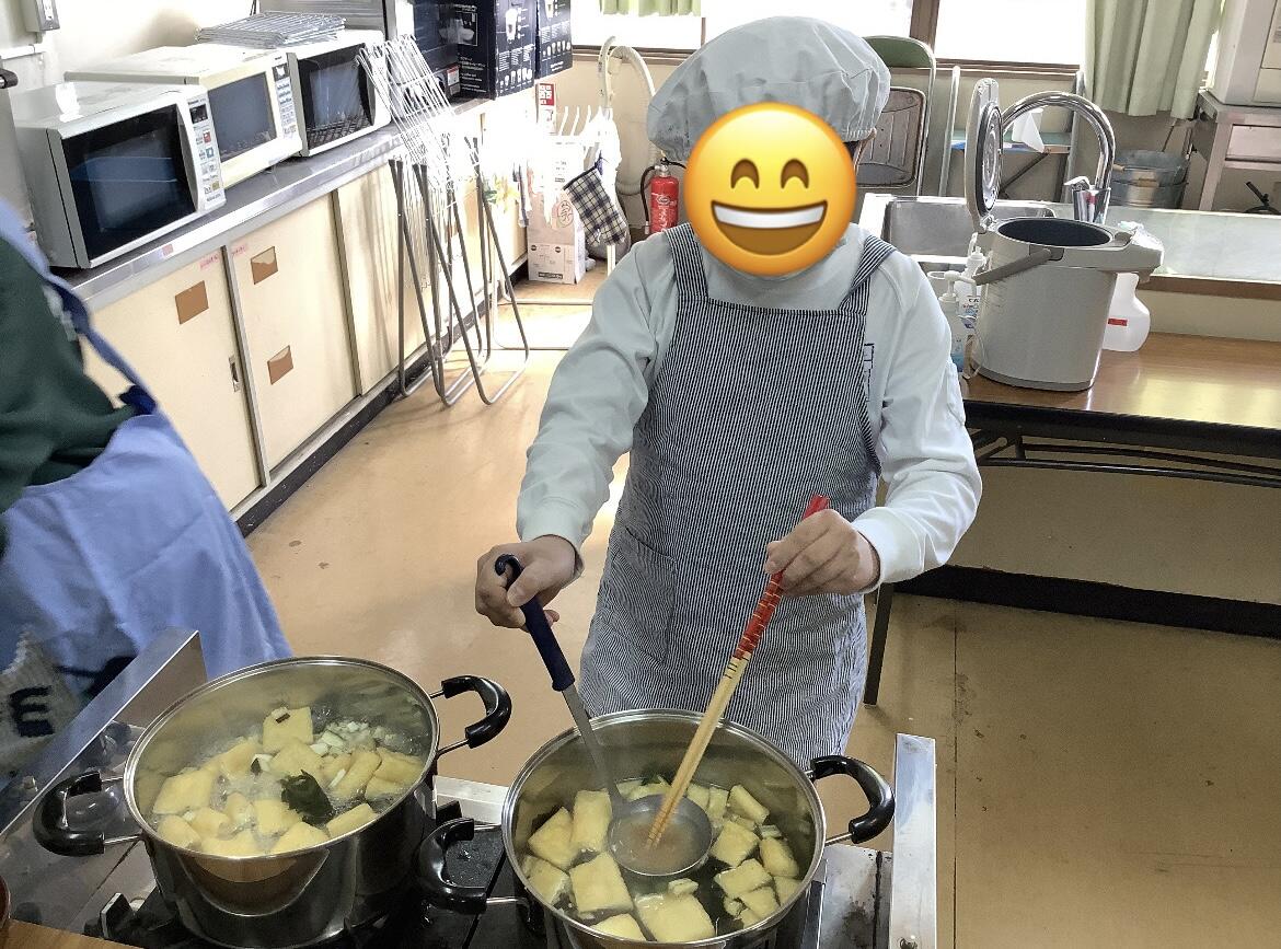 11月18日(火)にダイエー住之江店へ買い物学習に行き、11月19日(水)に自分達で買った食材を使って調理実習で『味噌汁』を作りました。