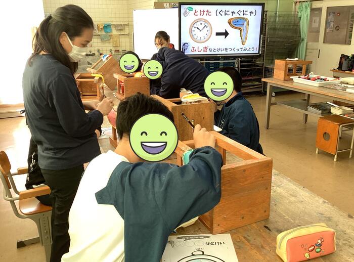 高等部1年生美術の授業では、有名な芸術家「サルバドール・ダリ」について学習しながら作品制作をしています。 ダリといえば「面白いひげ」。それぞれオリジナルのひげを画用紙で作り、ダリになりきってみました。 そして「細くて長い足の象」。画用紙を縦につなげて長~い足の象やオリジナルの生き物を描きました。 最後に「溶けたぐにゃぐにゃの時計」。粘土で時計を作り、机や椅子を使って曲げて溶けた様子を表現しました。...