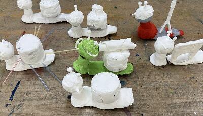 中学部2年生の美術では、「世界に一匹だけのカタツムリ」をテーマに制作をしています。